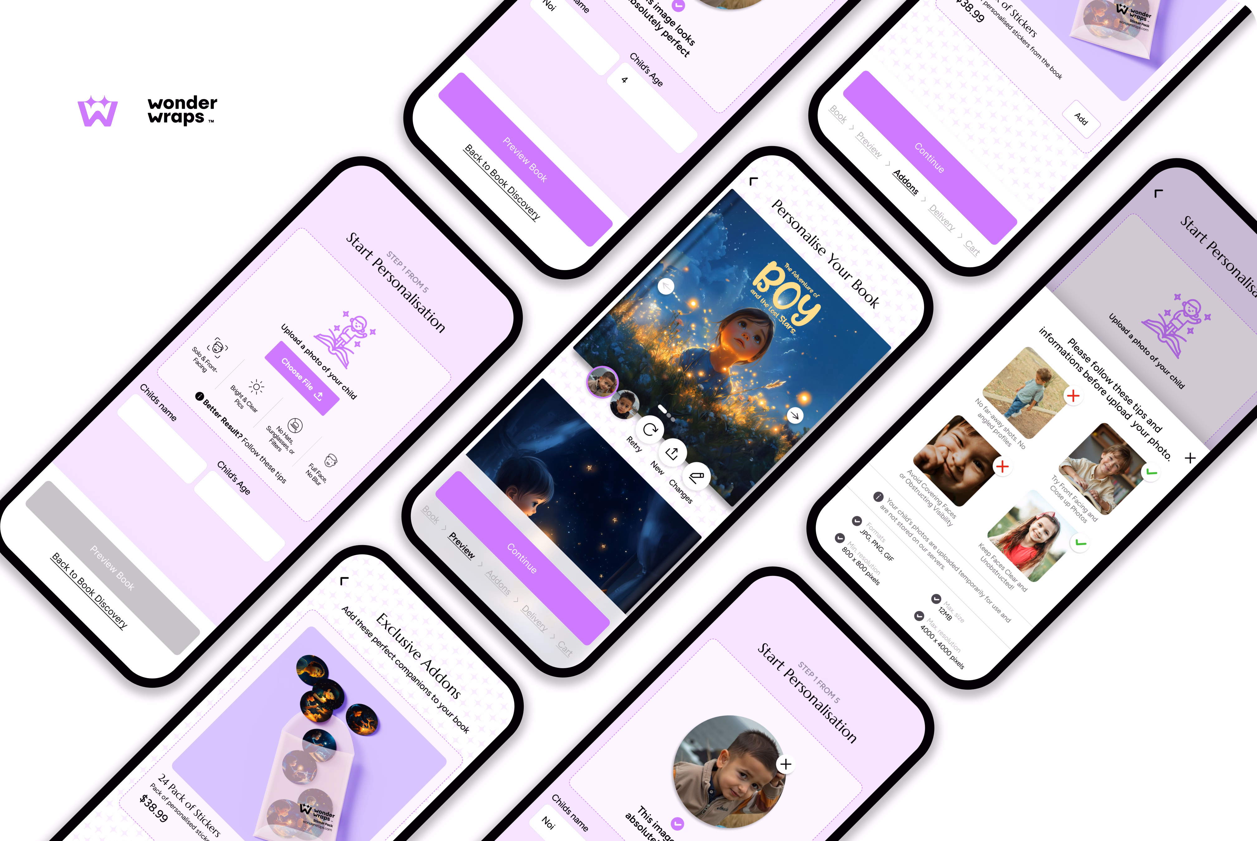 At TENTON, we built WonderWraps to offer a seamless, AI-powered experience that allows parents to create highly personalized books in just a few clicks. Our platform enables customization of characters' faces, expressions, and angles to closely resemble each child. Categorized by age groups (0-2 to 6-8 years old), WonderWraps ensures content is engaging and age-appropriate. The intuitive website simplifies the process, making it easy for parents to design, preview, and order their child's next adventure.
